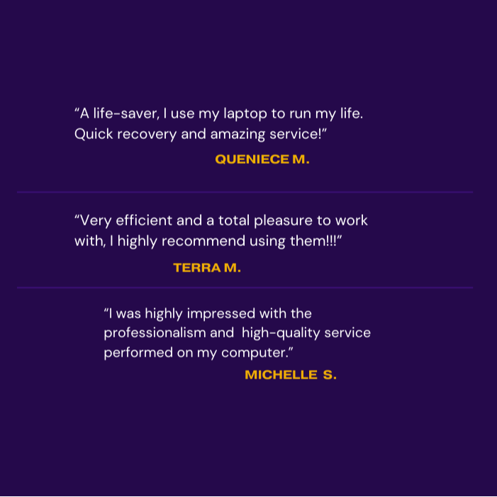 Is your computer freezing, running slow, or not turning on? We’ll pinpoint the problem and get it back to running smoothly. All services require a non-refundable $25 deposit, applied to the total labor fee